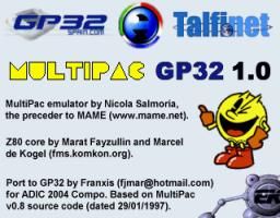 Franxis: I didn't have any experience porting an emulator, and I wanted to port a not too complex emulator to the GP32, before porting MAME. It was an experiment to port MAME after Multipac. Also Multipac is the preceder to MAME, and a lot of code is "similar". I estimated two months to port Multipac to the GP32, but finally I did it in only one month completely. I was shocked when I saw Pacman running on the GP32 with corrupted graphics during my first testings.